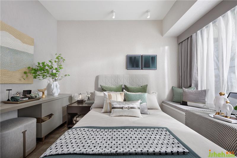 Sarah考慮到,Cody的爺爺奶奶偶爾會(huì)過(guò)來(lái)看望孫子同住幾日。為了讓父母能有一個(gè)舒適靜謐的休憩空間,Sarah將素雅的床品和飾品布滿了整個(gè)房間,隨意搭配綠植略顯舒適安逸。