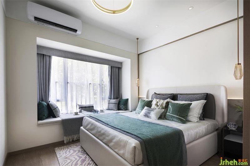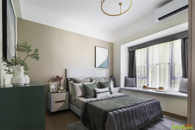 臥室是理性營造的積極生活所帶來的幸??臻g。我們?nèi)砸砸荒ňG意為主調(diào),以柔軟的布藝柔化空間的感覺,提升空間的舒適度。木地板細膩柔和的光澤感,仿佛是添加了一層柔光濾鏡,床頭垂掛兩只極具藝術感的燈具,更加突顯臥室的風情,溫暖而舒服的大床,自然在其中悄然演繹,與平靜有序的時光一同溫存出優(yōu)雅的韻味。