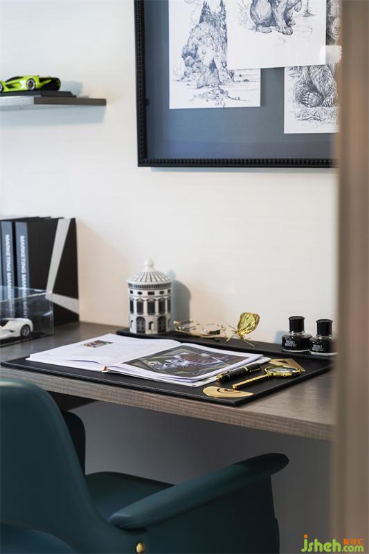 書房是展現(xiàn)戶主深層底蘊的場所,同時也是運籌帷幄的思考空間。樣板房設計上我們追求空間的主體性與實用性,墻面的掛畫粘貼的是男主人隨筆的工筆畫,只為記錄轉瞬即逝的靈感,簡潔干練造型的書桌,能讓男主人在此盡情創(chuàng)作。