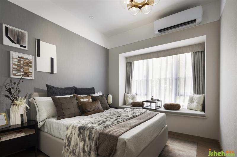 次臥空間將顏色的飽和度降低一度,更趨于強(qiáng)調(diào)空間的溫馨格調(diào)。高級灰打底,大地色系加以襯托,部分空間簡練留白的表現(xiàn)手法在空間反復(fù)運(yùn)用,虛實(shí)之間,將生活的純粹完美呈現(xiàn)。