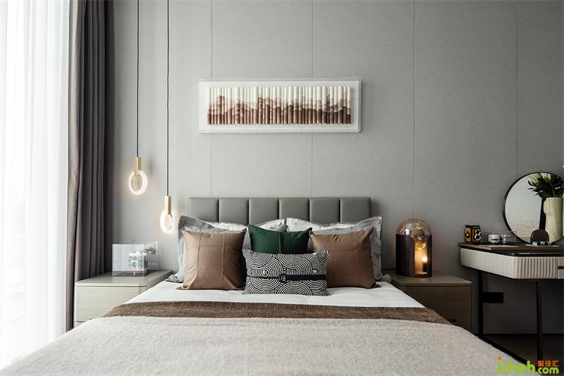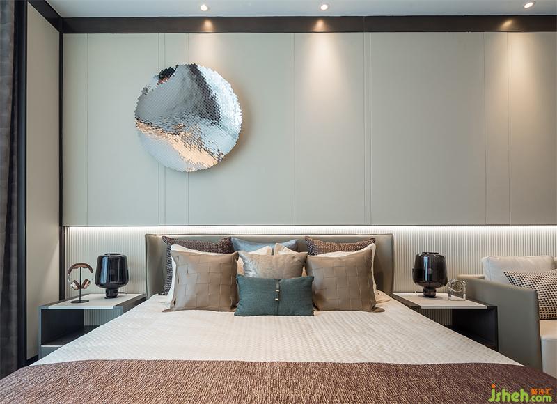 臥室的通道有兩條:一條穿過客廳書房,另一條則是從門廳直接轉(zhuǎn)角到達。主臥的空間足夠?qū)挸ǎ覀儗⑵浞譃闀蛥^(qū)、臥室區(qū)以及開敞式衣帽間和豪華衛(wèi)生間的大套房。整體空間樣板房設(shè)計從圖案色彩到材質(zhì)運用皆體現(xiàn)出雅致的意味。男主人睡前在沙發(fā)上瀏覽行業(yè)資訊,打個小盹,翻閱從瑞士帶回來的鐘表畫冊;女主人遞上愛馬仕羊絨毯,溫馨又甜蜜??恐罂堪?,兩個人在睡前交流各自的生活心得,偶爾俏皮的打鬧;抑或早晨的陽光透過綿密的紗簾一點點灑進來,她欣賞著他熟睡的樣子,親吻他迷人的輪廓......