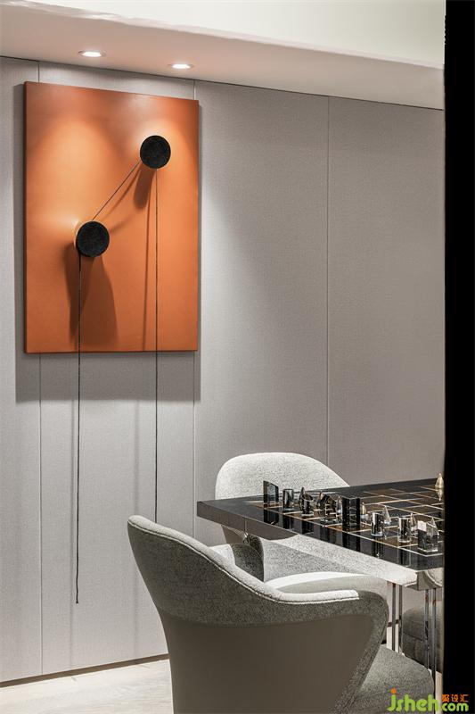 陳羽曾在《茶經(jīng)》里說(shuō)到喝茶的客數(shù),最適宜數(shù)三數(shù)五,他講“茶性儉,不宜廣,廣則其味淡?!?。茶室的淺色調(diào),配淺木色木地板及木格柵,軟裝則以重色家具和較低的茶臺(tái)調(diào)和空間沉穩(wěn)的調(diào)性。