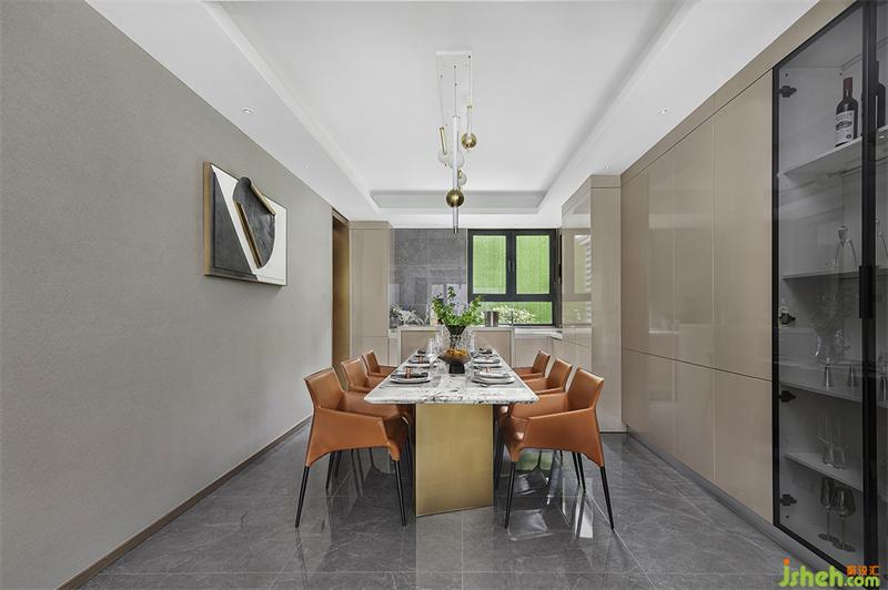 和煦的陽(yáng)光,透過(guò)稠密的樹(shù)葉灑落下來(lái),成了點(diǎn)點(diǎn)金色的光斑。餐廳成為一家人最常待的區(qū)域,這里是他們的感情連接處,墻壁的裝飾品點(diǎn)綴提升用餐氛圍感,在這里展開(kāi)生活的無(wú)限可能。