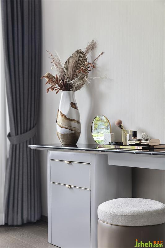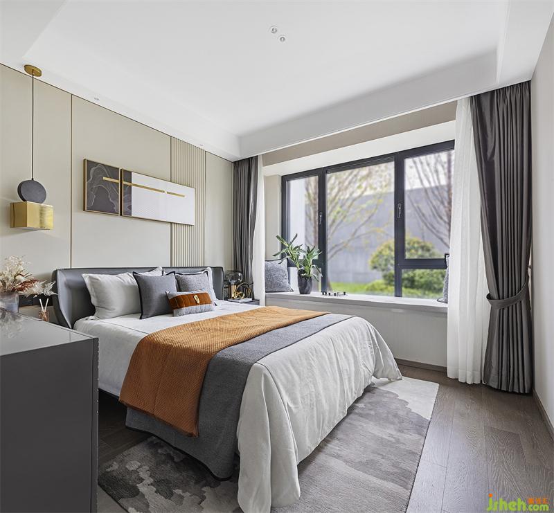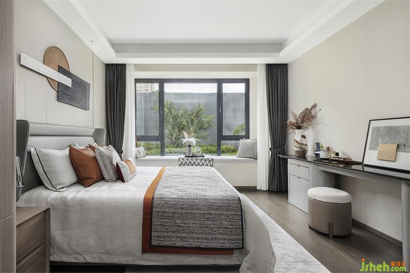 灰色是沉穩(wěn)考究的態(tài)度,也是雅致柔和的意向,床品活力橙的出現(xiàn)讓空間更加感覺舒適與溫暖。西安樣板間設(shè)計在“無往不復(fù)的天地之際”空間意識里,讓身處臥室中的人獲得精神與心理上的放松,享受當(dāng)下獨與天地往來的適意曠達(dá)。