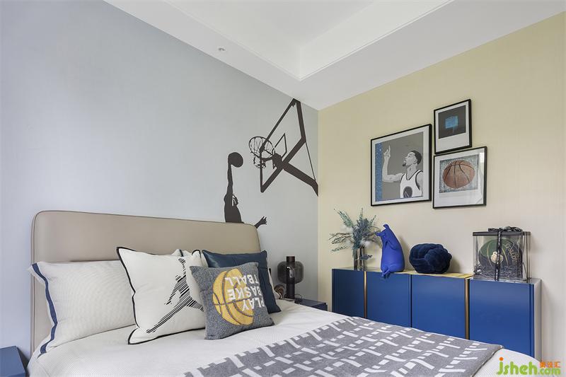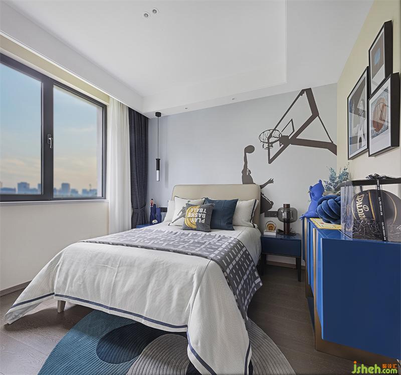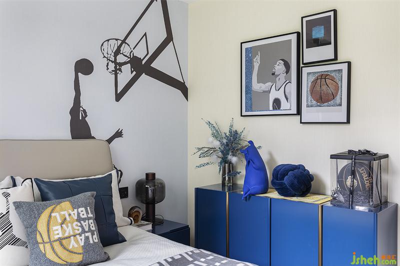 兒童房是孩童的小天地,藍(lán)色則是超現(xiàn)實主義的烏托邦,激情與籃球存在,青春也與籃球同在。籃球主題的兒童房空間,我們加入克萊因藍(lán),打造出一個夢的世界,散發(fā)自然氣息和無限的活力。