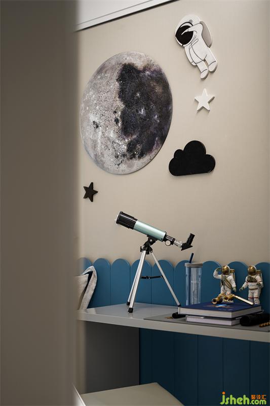When the dream of traveling in space becomes a reality... The children's room gives children enough room for fantasy, and also gives them a humanistic atmosphere. The combination of dynamic and static, delicate and life-like accessories and furnishings fills the entire room.