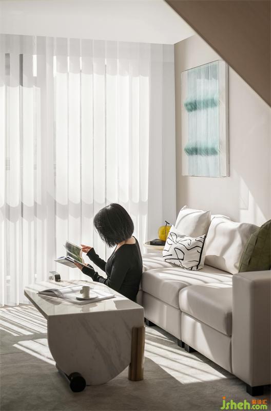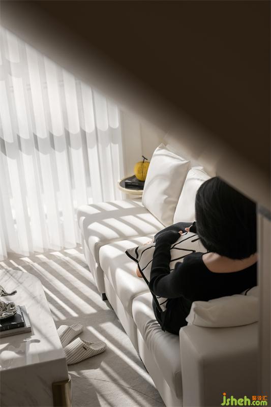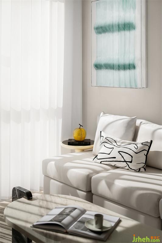 充滿陽光和清風(fēng)的早晨,開啟美妙的一天,起身開窗,與陽光和清風(fēng)撞了個滿懷。溫暖的米白色融入清新的草綠色,像一杯抹茶拿鐵,清新味道中融入了幾絲奶香與甜味,灑入室內(nèi)的陽光,留存一室溫暖。小小的一方空間成為主人公難得放松與寧靜的一隅天地,享受著溫暖的愜意,洗去一身煩惱。