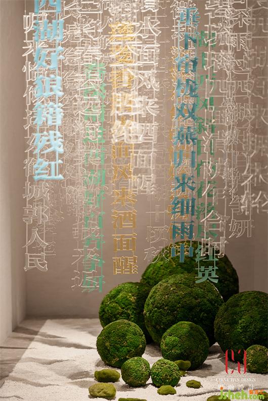 以活字印刷術(shù)為靈感的背景墻,系統(tǒng)地講述出文人墨客與潁州西湖貫穿千年的詩酒風流。