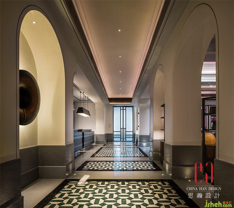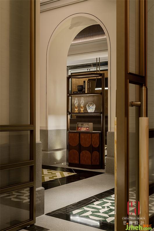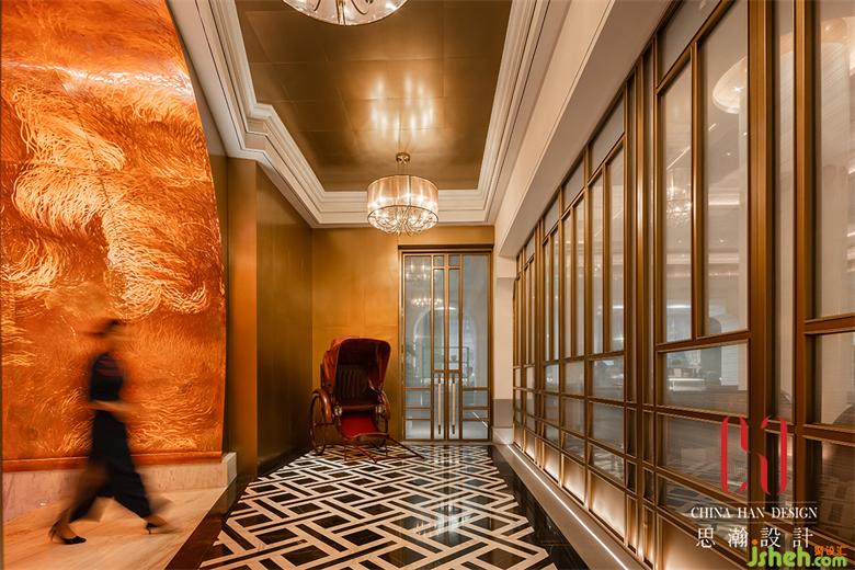 拾級而上,站在分叉路口,左側與右側的大門,該選擇哪一個?迎接而來的,將會是怎樣的奇遇?國際酒店設計透過端景處的玻璃隔斷,室內柔和的音樂,場景與人撲面而來。