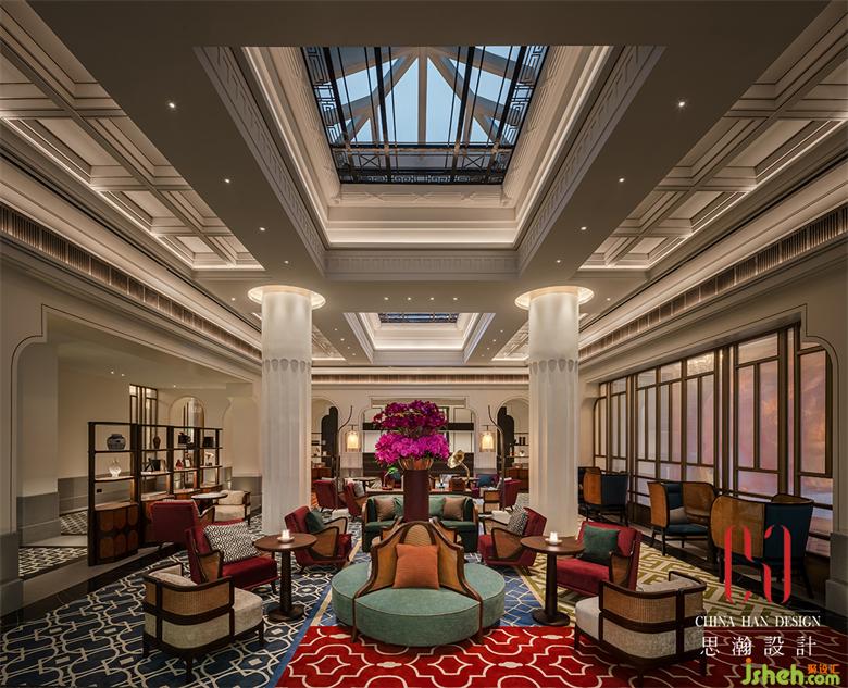 酒店一層的天窗極具視覺延伸感與通透性,設計師在這里引入了一個清晰挺闊的構架設計,于細節(jié)中展現(xiàn)這座城市的文化印記。