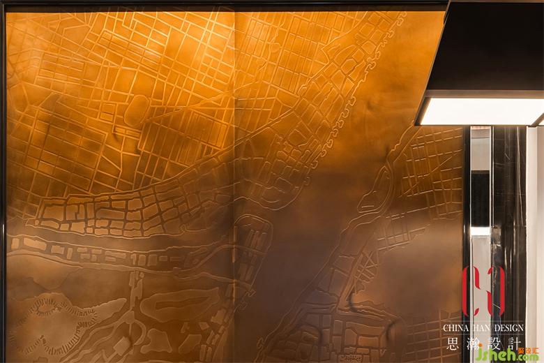 皮革質(zhì)地,旅行箱造型的前臺,以及端景的武漢老地圖純銅浮雕,觸發(fā)百年前郵輪民國風(fēng)情和碼頭、租界文化的時光記憶。
