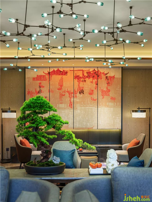 設(shè)計(jì)師從在地文化當(dāng)中的建筑、自然、生態(tài)、藝術(shù)品尋找設(shè)計(jì)靈感,通過現(xiàn)代的設(shè)計(jì)手法,呈現(xiàn)到整個(gè)空間當(dāng)中。
