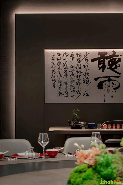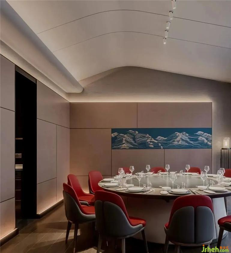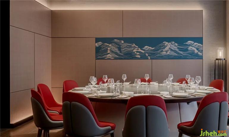 武漢餐廳設(shè)計(jì)以東方美學(xué)建構(gòu)的中軸對(duì)稱(chēng)布局,