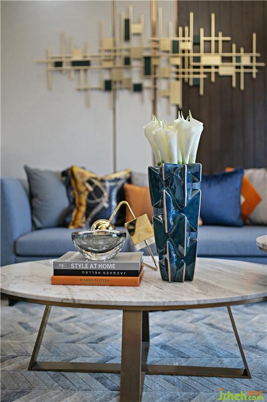 設計師說:本案以霧霾藍及愛馬仕橙為主色調,同時運用大量的金屬線條,金屬線條顯示一種現(xiàn)代裝修的年輕感,這些現(xiàn)代元素的結合,將高級感和品質感體現(xiàn)的淋漓盡致,形成一股極強的藝術張力。