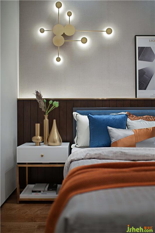 相較于別致典雅的主臥,次臥力圖在舒適與藝術(shù)之間達到共鳴。愛馬仕橙的色調(diào)顯奢顯貴,充滿藝術(shù)氣息的床頭燈稍作點綴,提升整個空間的裝飾感。270度觀景陽臺擺放動感單車,欣賞風(fēng)景與鍛煉身體兩者兼得。