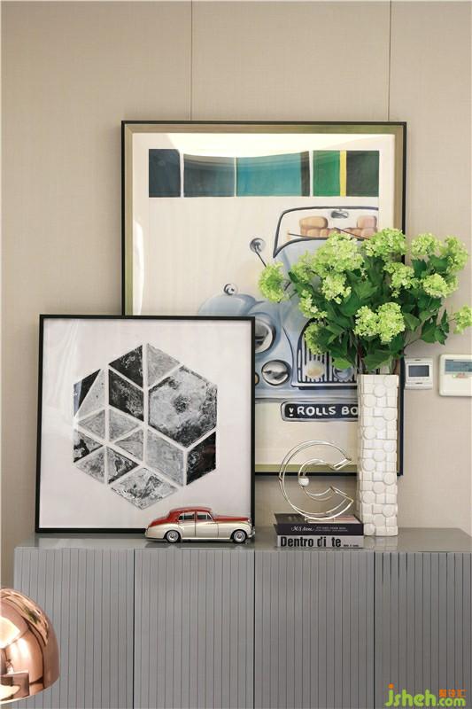 ▼房間內隨處可見的古董車模型以及老爺車掛畫,豐富空間層次且趣味十足,體現(xiàn)出別樣的復古藝術感。樣板房設計