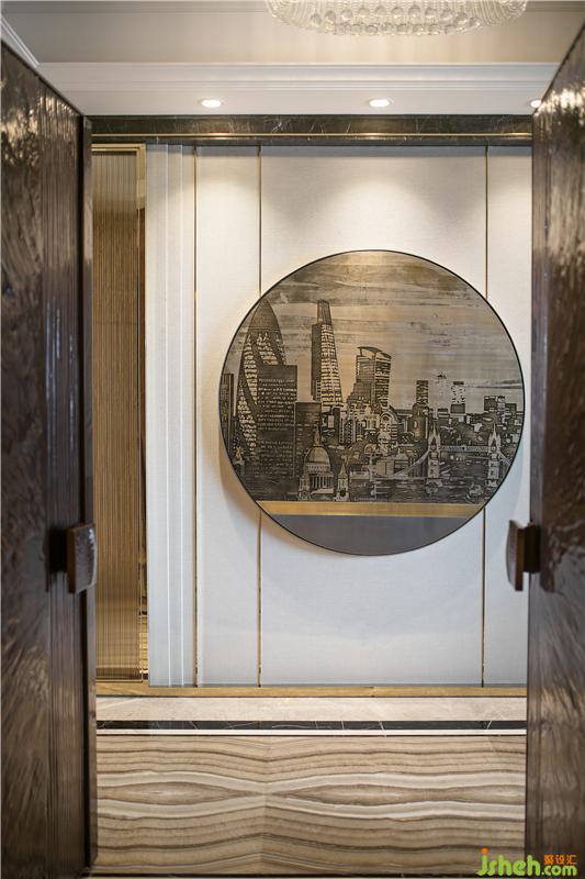 推門而入,映入眼簾的是一個圓形的裝置藝術(shù)品,“圓”是中國文化的一個重要精神原形,契合了中國人內(nèi)心深處對圓滿人生的向往。結(jié)合倫敦地標(biāo)性建筑——倫敦塔橋剪影,在莊重典雅的氛圍中流露出的文化底蘊(yùn),彰顯主人豐富的人生閱歷與品味。