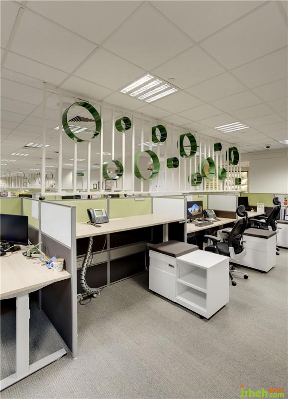 設(shè)置了三個(gè)半封閉式區(qū)域供員工辦公或休息使用。室內(nèi)設(shè)計(jì)師