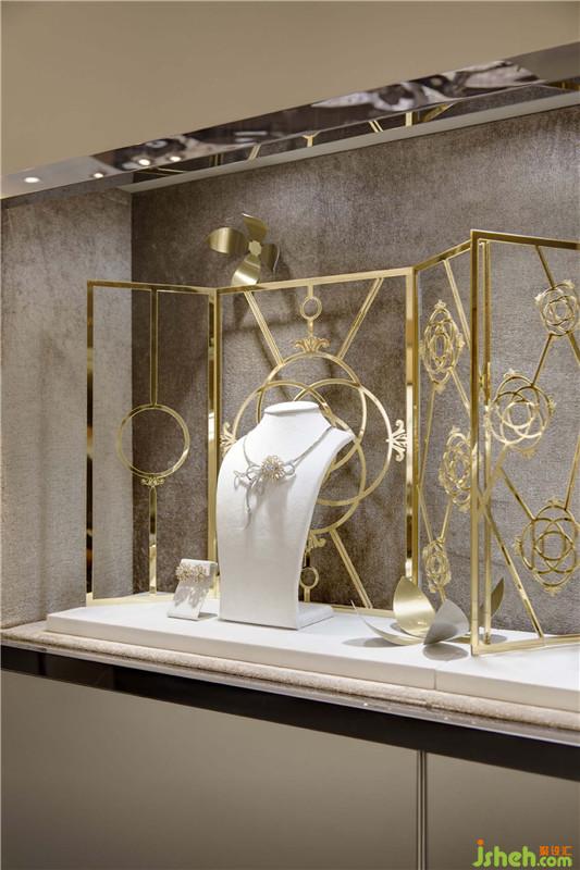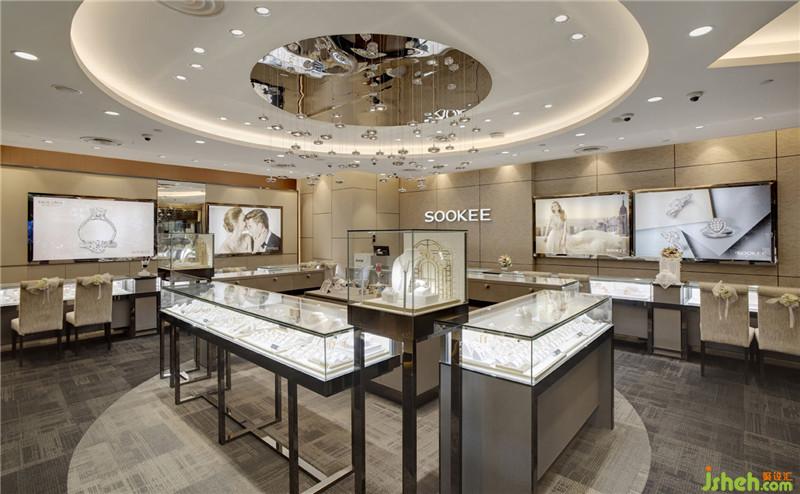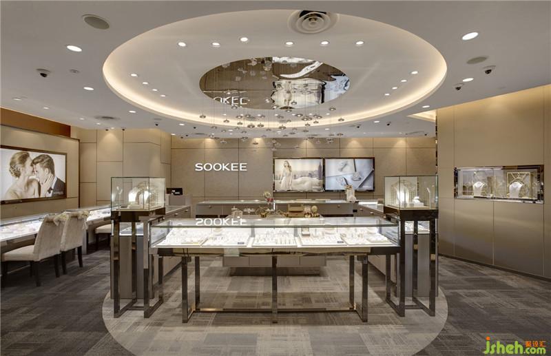 該珠寶店位于新加坡烏節(jié)路購物街上的ION商場。通過設計來敘述婚姻如何將兩個人聯(lián)系在一起。并在此概念基礎上,設計了可以通往同一區(qū)域的兩個不同的入口。中心區(qū)域位于象征幸福的圓環(huán)光芒之下,而其他空間則用來引領(lǐng)顧客觀眾進入該區(qū)域。店面設計選擇了中性色調(diào)的飾面和家具,從而達到一個自然和諧的環(huán)境。設計公司