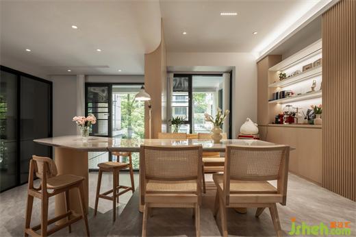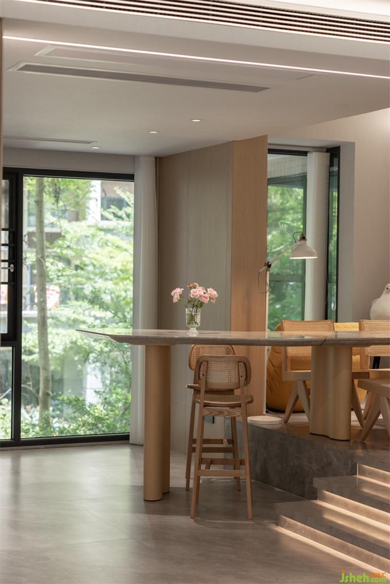 本案是兩個(gè)非常有想法的文藝的西安青年的房子,由于工作原因離開了生活很久的西安,來(lái)到了深圳,但是買房的時(shí)候有9樓和3樓兩個(gè)選擇,糾結(jié)再三,考慮了三樓,因?yàn)閺娜龢堑拇皯艨闯鋈偤玫氖菢涞闹Ω勺詈每吹牟糠?,但是這樣就會(huì)有采光比較差這個(gè)問題,我和女業(yè)主一拍即合,豪宅設(shè)計(jì)決定打掉最中間的書房位置,把書房變成和餐廳為一體的空間,整個(gè)南面的采光也就全部進(jìn)來(lái)了,另外設(shè)計(jì)了一個(gè)帆船餐桌和書桌的結(jié)合體,不是兩個(gè)分開的桌子,看起來(lái)沒有那么突兀,主臥的設(shè)計(jì)也是以通風(fēng)和采光為主,衛(wèi)生間做了三分離,盡量讓主臥的通透感做好,例外整體氛圍原木風(fēng),自然舒適,業(yè)主說自從住進(jìn)了這個(gè)房子以后,變得再也不想出去了,就想呆在家里~