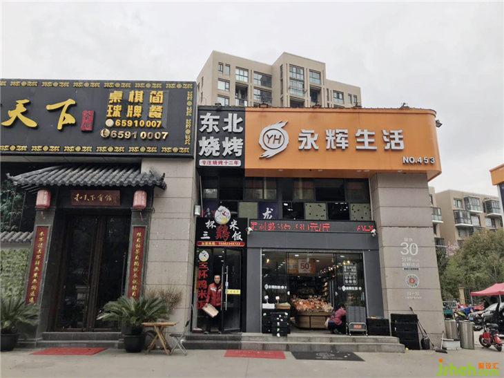 項目位于江蘇省蘇州市工業(yè)園區(qū)九華路,處于周邊多個住宅區(qū)的生活中心。原店是三杯雞米飯/東北燒烤,是小區(qū)臨街的一間商鋪,空間單一且狹小。店面的立面非常狹長,內(nèi)部空間相應(yīng)也是極其狹長的“過道式”空間,長約13米,寬2.3米,面積大約30平方米。新的餐廳是一家新興的鮑汁撈飯店,業(yè)主希望通過室內(nèi)外的改造,形成獨特的空間體驗,而吸引周邊住宅的人流量以及外賣流量,讓店面成為大家都想來吃飯打卡的“網(wǎng)紅”快餐場所,并由此對后續(xù)外賣業(yè)務(wù)起到拓展作用。