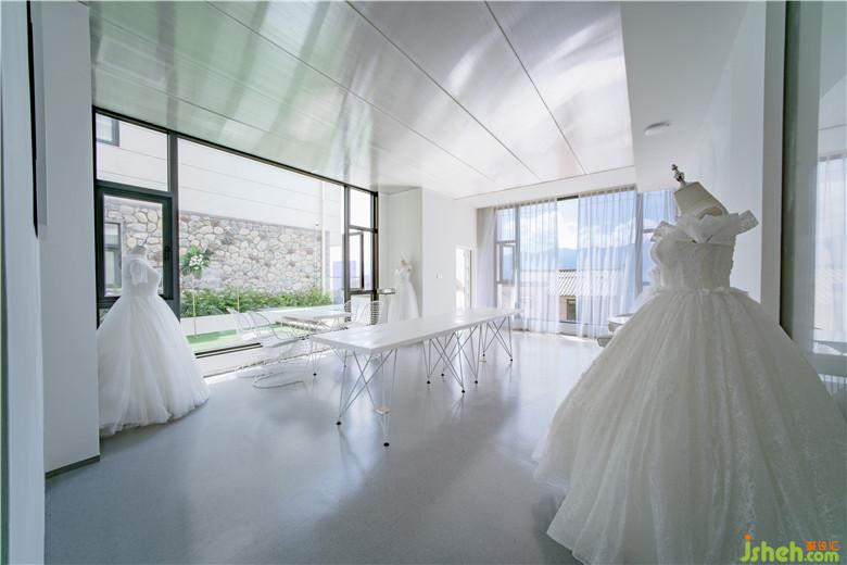 于是設(shè)計(jì)團(tuán)隊(duì)開(kāi)始反思:傳統(tǒng)的婚紗攝影印象中總是盛大的場(chǎng)面,堆砌式的布景常常會(huì)讓我們忘記主角到底是新人還是景色。基于業(yè)主的需求重新定義一種婚紗攝影工作室,成了我們最初的目標(biāo),要干凈利落,成為襯托新人最好的背景。
