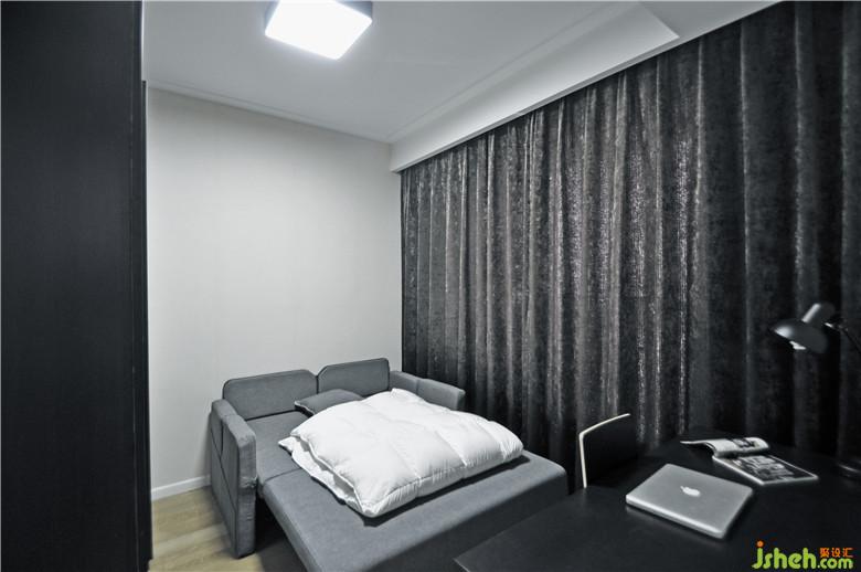 小臥室被用于做書(shū)房讓業(yè)主能在相對(duì)獨(dú)立的環(huán)境中辦公看書(shū)。通過(guò)書(shū)房沙發(fā)床的改變,同樣能夠滿(mǎn)足訪客來(lái)訪的居住需求。這樣既避免了床這樣的大家具在小空間中產(chǎn)生的占據(jù)感,同樣增加了空間的多樣性。