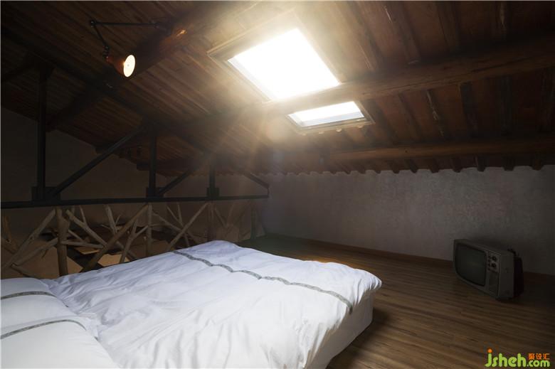 閣樓臥室東西向的界面上試圖營造“戶外”的狀態(tài),帳篷自然露營在田野上的感覺,可以想見皓月當(dāng)空,與君同坐帳篷中,在可俯瞰四周,可從天窗瞭望星空,安然閑適。
