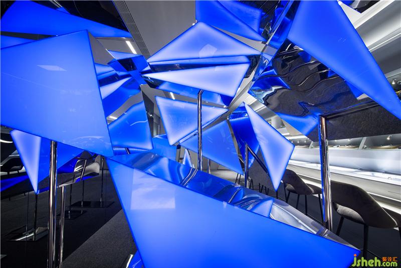 In the cashier area composed of irregular polygonal elements, the multi-faceted cutting form of the overall space is continued, the plane language is turned over, the traditional cashier is hidden, and customers instinctively avoid the cashier area. The modeling wall is integrated with the overall space, adjacent to the negotiation rest area, which integrates the functions of cash register, maintenance, and staff rest in the final space narrative.