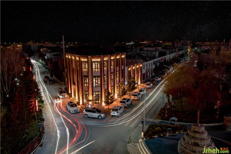 The renovation of the external fa?ade of building uses the door and window elements of traditional Tibetan architecture, including Tibetan-style lattice windows and wooden window heads, and use of window trim in the form of setbacks in order to create the rhythm of traditional Tibetan building doors and windows. In consideration of the plateau climate, all windows use double-layer hollow glass and thicker glass frames to ensure indoor thermal insulation. In the material selection of window head and window trim, we used rusty steel plate instead of wood to solve the problem that wood is not durable in the outdoor environment of plateau. The exterior wall was painted by pale rammed earth yellow real stone paint to create the rough texture of the rammed earth walls of traditional houses. Through the modern interpretation of traditional elements and use of modern materials with controllable costs we were able to respond to the "memory" of local residents to regional buildings. In the design of facade lighting, we also avoid using direct light sources and use bottom and groove lighting to highlight the texture of materials and the form of external facades.