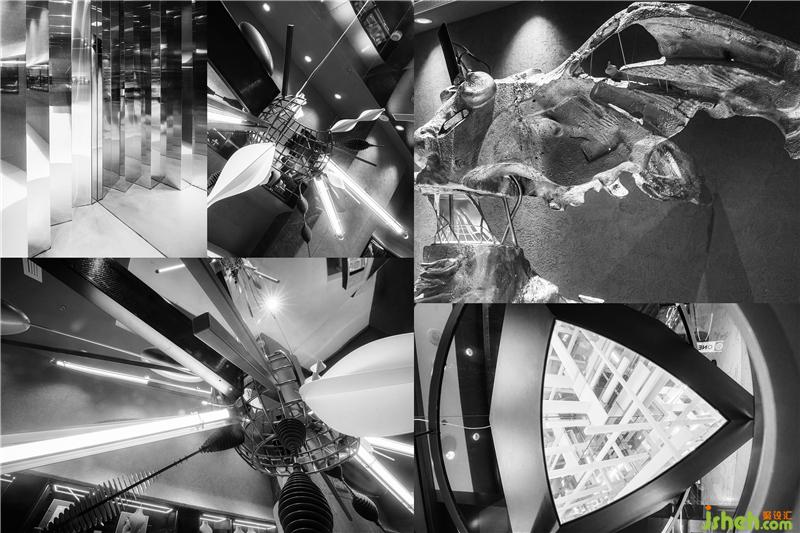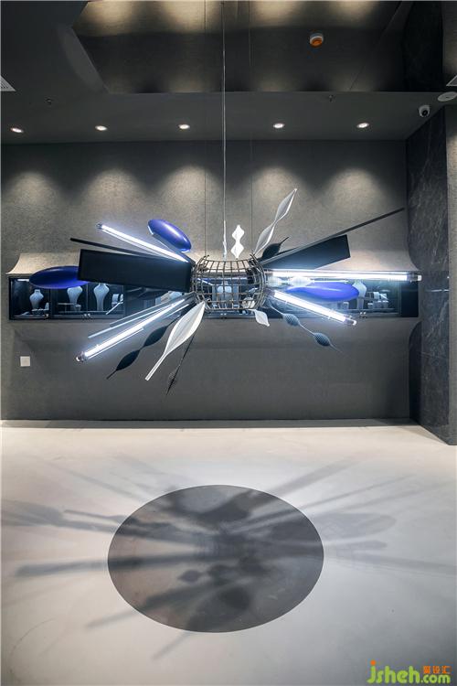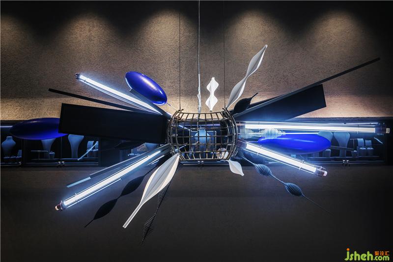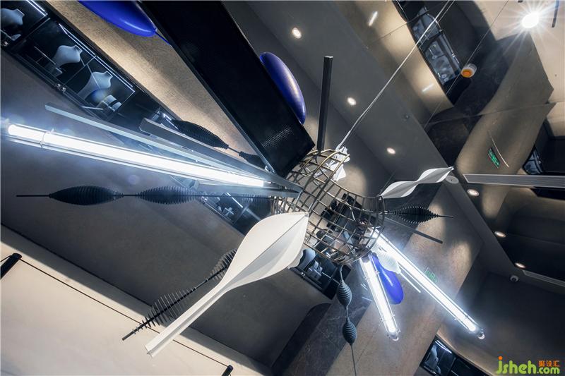 跨越時空的記憶被觸發(fā),平行時空,虛假宇宙,頭腦風暴,腦海里重塑著無數(shù)的瞬間。樹枝代表著生命的誕生,燈帶等象征著思維爆炸的動態(tài)過程。武漢店鋪設(shè)計三個橄欖形的裝置為克萊因藍色,由此可以讓人聯(lián)想到著名的無定向空間“克萊因瓶”,克萊因瓶沒有里外之分,它的表面不會終結(jié),即代表著無限的空間,也象征著珠寶背后無限、沒有終點的愛情。