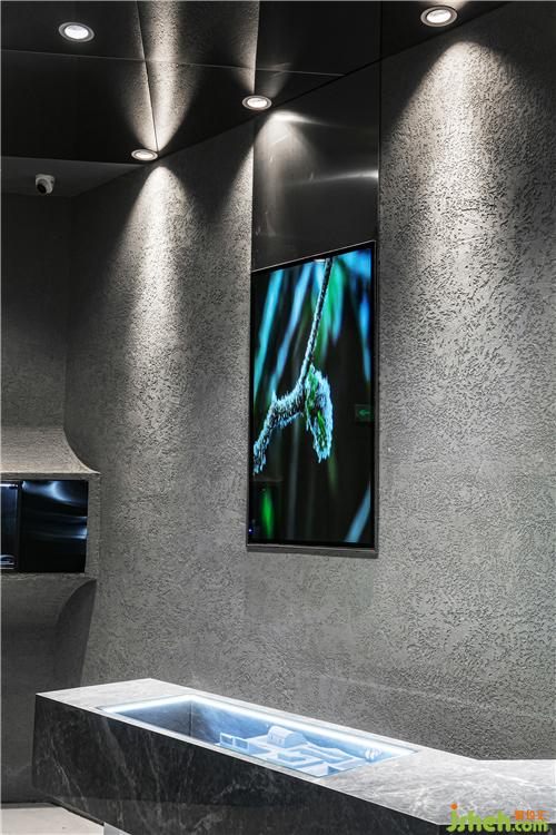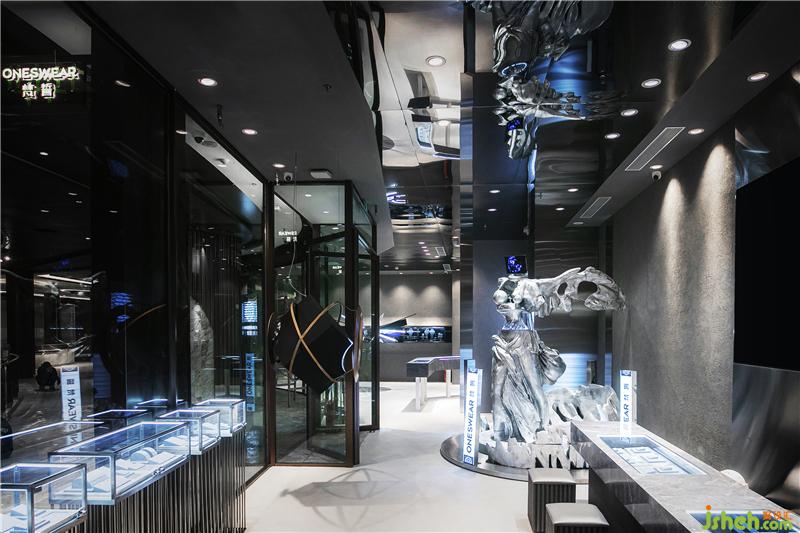意識是雙向流動的層疊交織,未來和過去的記憶交匯,一些細碎的過往也許會被遺忘的瞬間重塑拼湊在記憶里。時間發(fā)生逆轉(zhuǎn),意念交織帶來身臨其境的感知,給人一種墜入了新世界的錯覺,同時新世界中還保留著過去舊世界的殘骸。武漢店鋪設(shè)計現(xiàn)代感的電視屏幕象征著未來的新世界,人物雕像象征著舊的世界。設(shè)計師采用燈帶、藝術(shù)人物雕塑和現(xiàn)代感電視等元素編織出豐富的層次。光影流轉(zhuǎn)下,藝術(shù)人物雕像似乎蘊藏著回憶地刻痕,現(xiàn)代感的屏幕又詮釋著不被定義的未來。