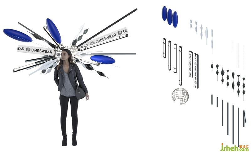 顧客可以站在裝置的中間拍照,向外放射型的裝置象征著思維的爆發(fā),給消費者強烈體驗感,引導(dǎo)消費者更好地參與到故事中。