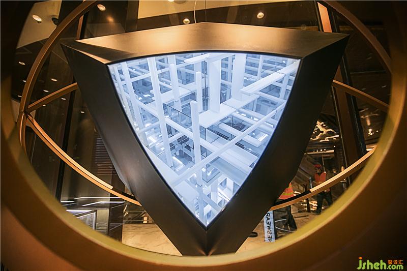 黑色盒子內部為鏡面反射出的無限的場景,眼睛狀地金屬裝置環(huán)繞在盒子外,盒子開口處放置一些店內的重點產品,起到一個在無限空間中產品被包裹的效果,同時也成為店面中的視覺驚喜和記憶點,巧妙地為空間注入未來感氣息,吸引來往的顧客。