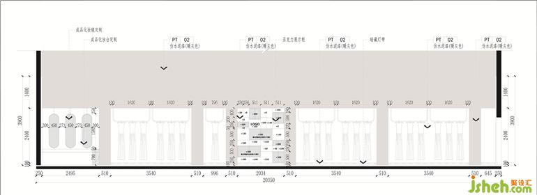 整體展廳設(shè)計空間采用淺灰色為基調(diào),從而能夠襯托產(chǎn)品的色彩與質(zhì)感。