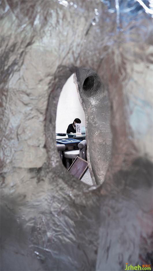 The whole installation is made by glass fiber 3D printing process and using aluminum foil paper to make wrinkled texture on the surface which not only expresses the imagery of heart fiber, but also creates thefashion metal texture. It reflects the aesthetic feeling of rationality and restraint while creating artistic appearance.