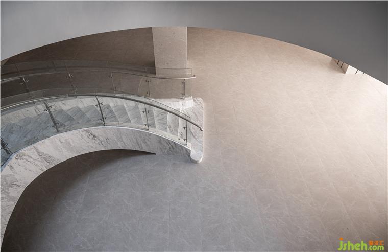 In contrast to the traditional square atrium, the building's atrium space is made up of several irregular circles in a staggered pattern. The atrium brings natural light into the circles on each floor, providing a sense of natural comfort. The sense of comfort leads people to gather in the atrium, allowing them to interact with each other in an open space. The atrium breaks down the spacing between floors, making the whole building interactive and fluid. The designer boldly used unique geometric elements in the atrium to make it look stylish and natural but also to internalize the combination of "square" and "circle". The designer wanted the 'circle' of the atrium to contrast with the square shape of the building as a whole to continue reconciling the 'square' and the 'circle'. Looking up at the atrium from within the building, the harmonization of "yin" and "yang" is a compelling concept.