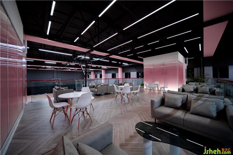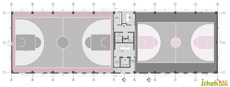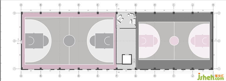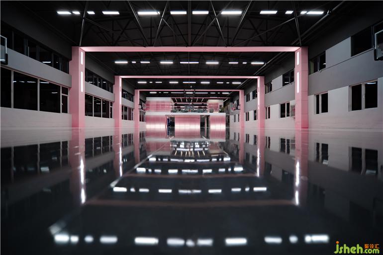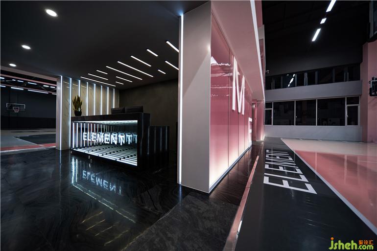 籃球館設計強調(diào)被粉色包裹的空間體驗與視覺體驗,相互兩個方面形成互補,用燈光加強立面的粉色漸變,增強視覺豐富性,讓空間體量變得通透完整。