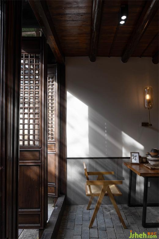 小酒館設(shè)計室內(nèi)空間完整保留了原始建筑的結(jié)構(gòu)、門窗及鋪地。