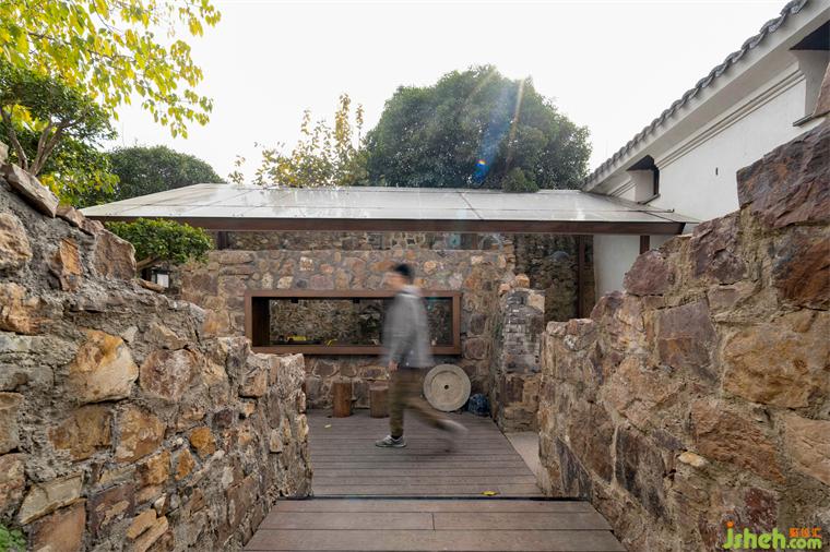 我們在保留后院遺存的黃石墻垣的基礎(chǔ)上,增加了平臺、階梯、座椅等元素,小酒館設(shè)計以滿足酒館業(yè)態(tài)的使用需求。新業(yè)態(tài)的植入使這片廢墟重獲新生,讓遺跡不再是僅供觀看的展品。