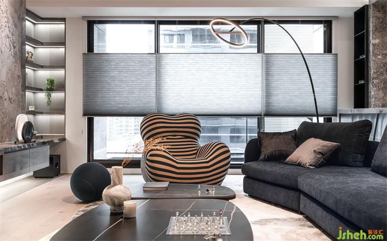 此案坐落于臺灣臺中市,復式設計將建筑環(huán)伺公園綠地的風景轉(zhuǎn)載,成為使用材料、動線安排、室內(nèi)設計的構(gòu)組元素。
