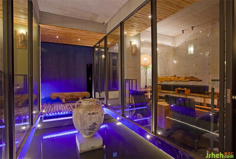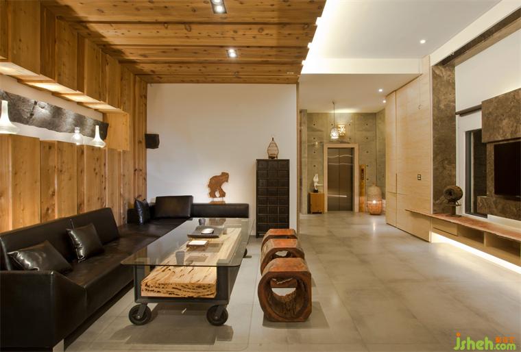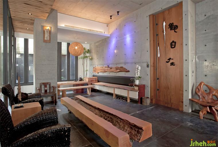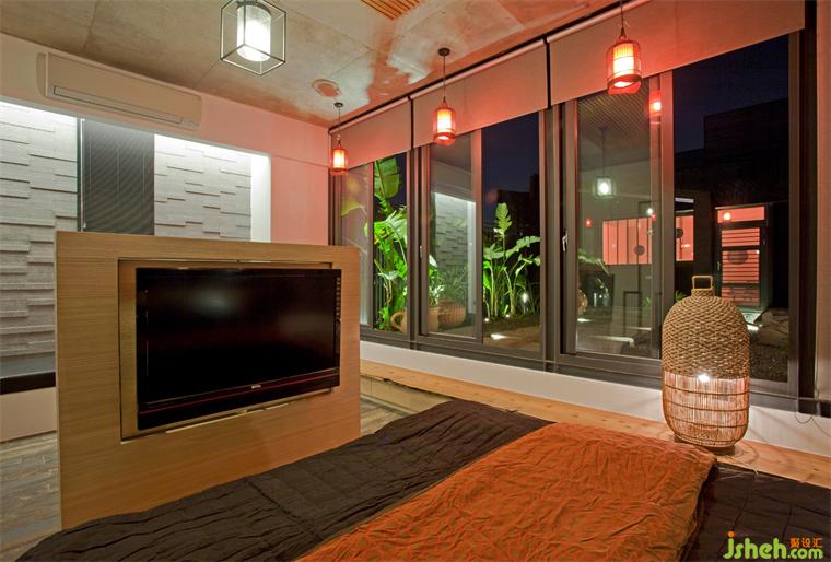 隨著樓層的拉升,從公領(lǐng)域轉(zhuǎn)入私領(lǐng)域設(shè)計,空間線條也從粗獷漸次轉(zhuǎn)趨細(xì)致,客房天花保留局部板模元素,床座與腰板皆采香杉立體切割,獨棟別墅設(shè)計并對應(yīng)下窄上寬的屋廓線條,微傾的床頭角度與直角切割的衛(wèi)浴墻面,形塑令人玩味的線條趣味。兩個男孩共享的孩房中運用大圖輸出插畫家作品,及大面白色烤漆玻璃,打造自由涂鴉的童趣空間。