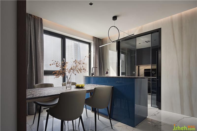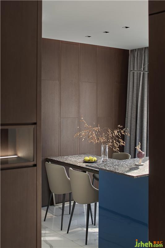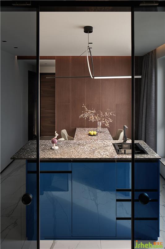 加以藍色吧臺點綴