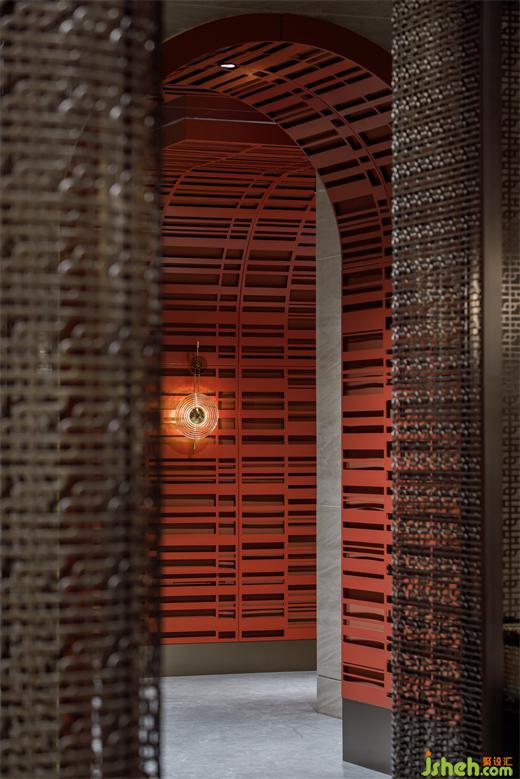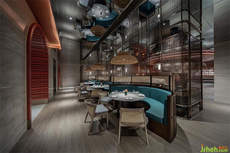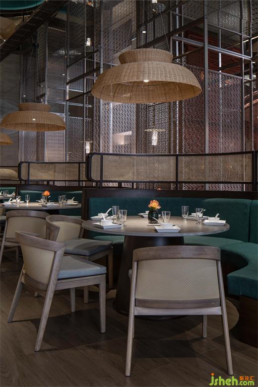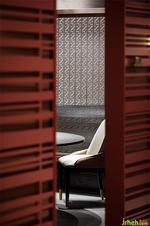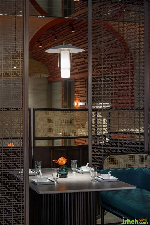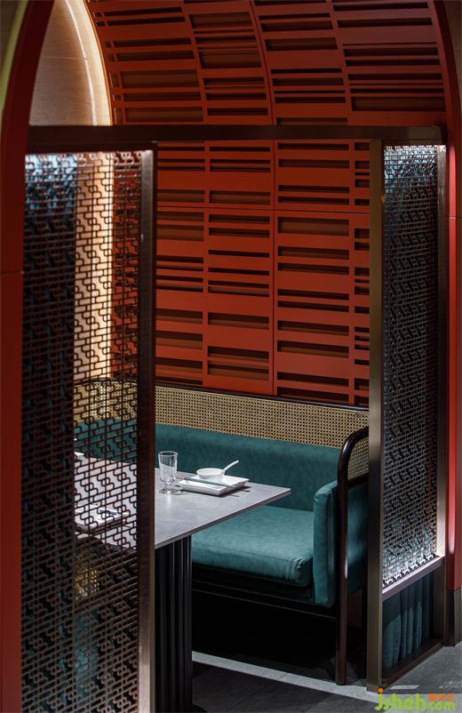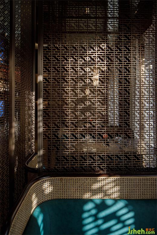 古銅色金屬格柵是從南泥灣logo的演變而來,餐廳設(shè)計(jì)提高了空間質(zhì)感的同時(shí)解決了散座區(qū)賓客的隱私問題,陽光穿過格柵,極具中國意境美。