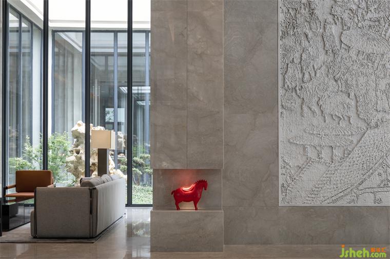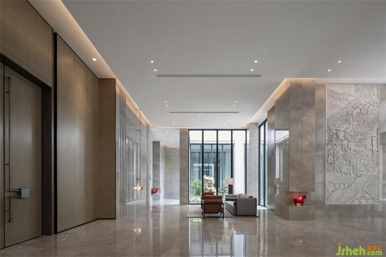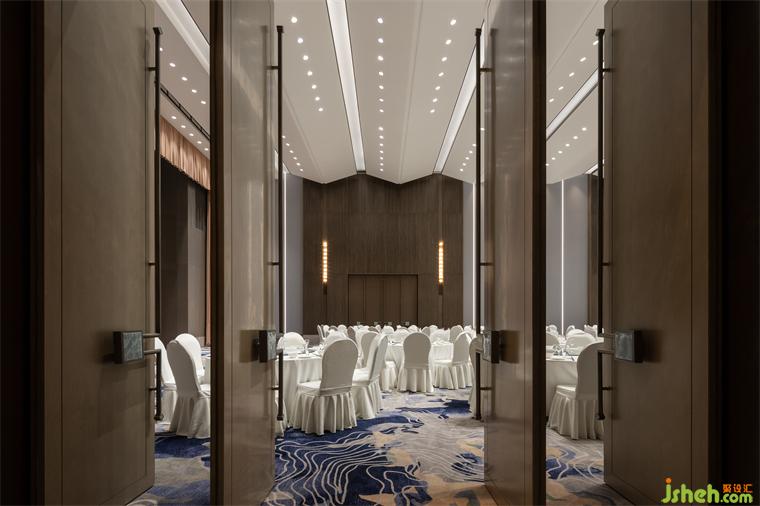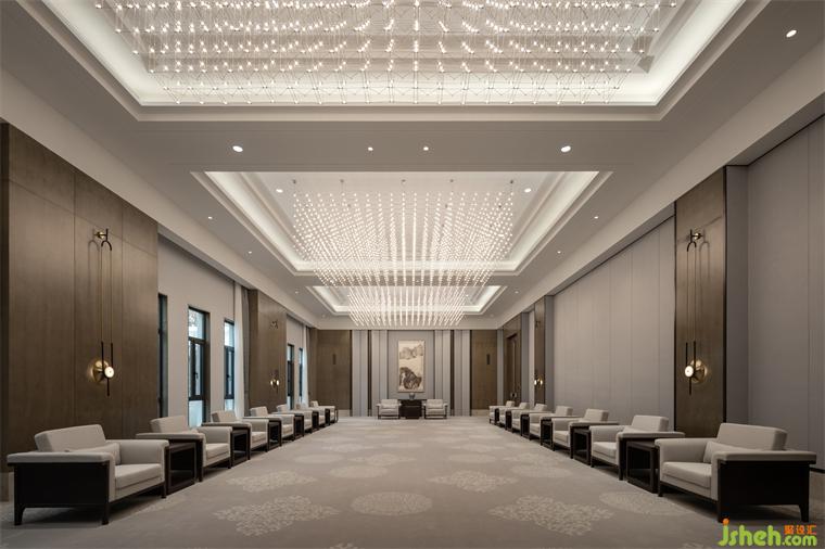第二個體塊則是利用原有建筑空地新增的功能區(qū),用于會議接待,包含一個可容納440人的多功能廳、1個會議室、2個接待室以及帶有地域文化符號的多功能包間,整個空間莊嚴(yán)典雅,適合政務(wù)接待等多種活動需求。設(shè)計(jì)師還在此空間內(nèi)增設(shè)了兩個小庭院,疏密得益、眼前有景,賓館設(shè)計(jì)從而打破大體量空間所帶來的沉悶感。兩個體塊因四個庭院起承轉(zhuǎn)合形成回廊得以串聯(lián),實(shí)現(xiàn)了內(nèi)部空間的有序性。