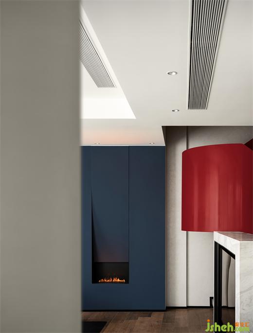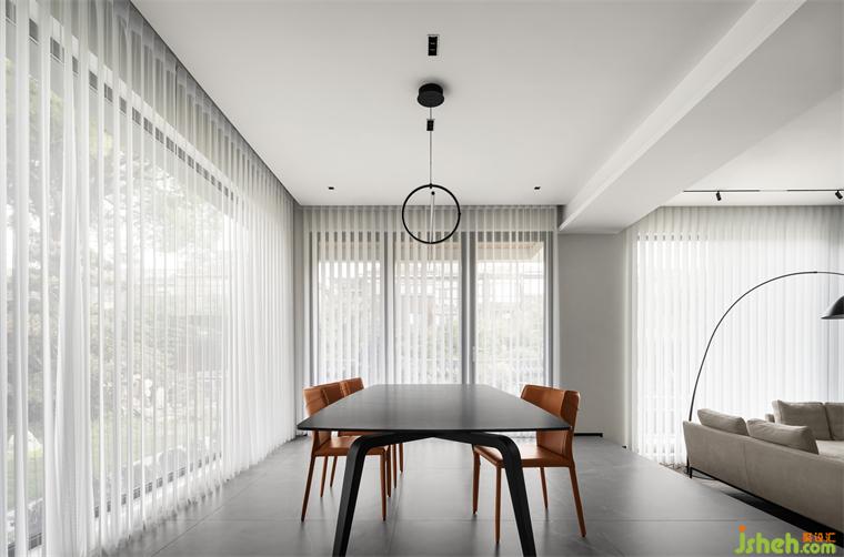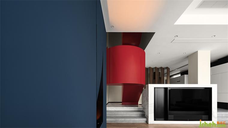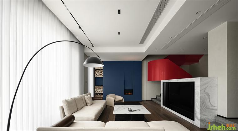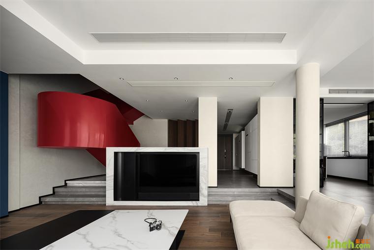 別墅裝飾以直線和直角作為基準語言,以幾何圖形作為基本元素,將作品的色彩限制在原色、黑色和白色上,造型限制在橫向與垂直的韻律節(jié)奏上,設(shè)計師將蒙德里安的藝術(shù)語言應(yīng)用到空間設(shè)計中,讓居住空間兼具理性的秩序和朦朧的美感。