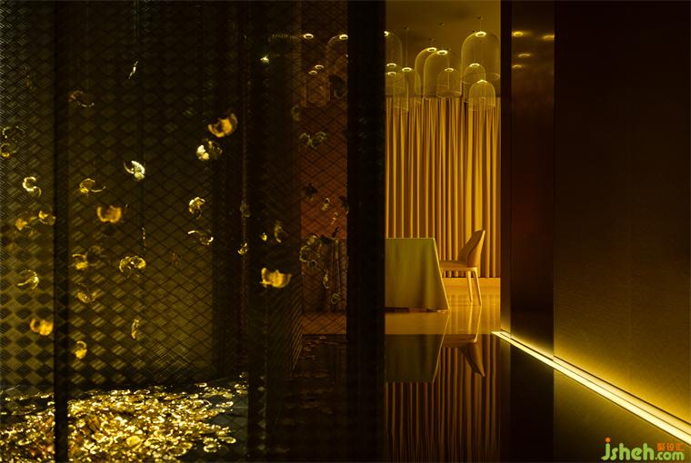 餐廳設(shè)計(jì)同樣是精神層面的追求,我刻意回避禪意中所特有的那種淡淡的苦澀,而是努力在詩(shī)意和浪漫中,增加一點(diǎn)甜的味道,在激發(fā)客人食欲的同時(shí),還能避免給人冷漠和苦澀的心理暗示。衛(wèi)生間以彩虹方式呈現(xiàn)的陰影、以及朦朧中飄落的銀杏樹葉等等,所有的語言和創(chuàng)意,都是為了關(guān)閉客人的理智,激活客人的情緒。只有讓客人的情緒產(chǎn)生波動(dòng),才能喚起客人的浪漫情懷,才能為人與人之間的關(guān)系更加親密友好助力,才能為社交活動(dòng)的事半功倍助力。