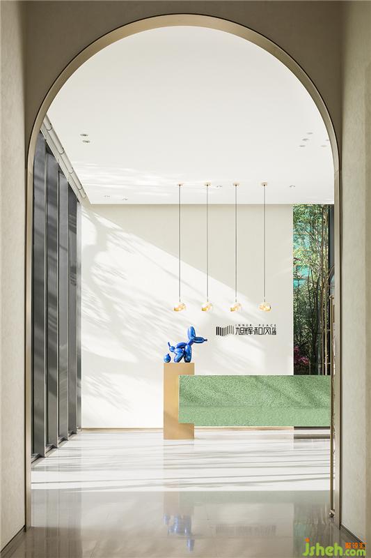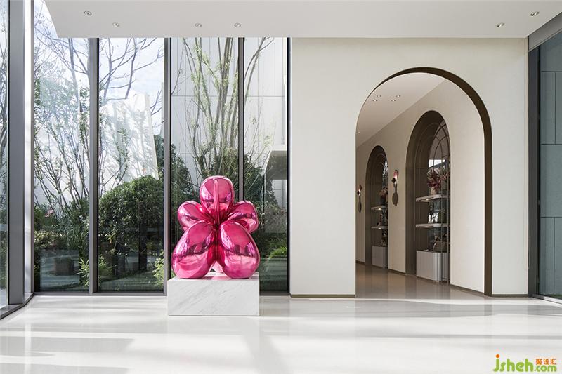 針對熱愛挑戰(zhàn)、標新立異的客戶群體,設計師選用兩件美國著名藝術家Jeff Koons的作品。以高傲姿態(tài)矗立于接待大廳,輕松占據(jù)空間C位,向端莊的傳統(tǒng)藝術理念叫板。裝修公司