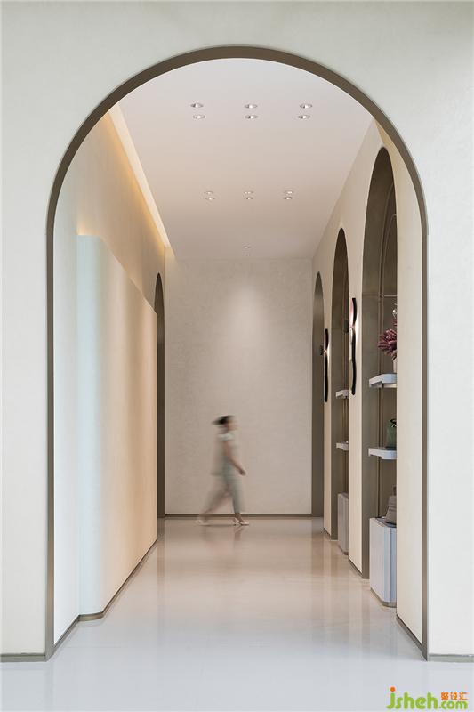 空間中多個精美的展架上陳列的,是與品牌OOAK的跨界合作的成果。金屬線條勾勒出一系列展架以充滿當代活力的買手店之姿模擬購物體驗,通過這種表達生活的方式,完成從物到人的回歸,培養(yǎng)客戶歸屬感。