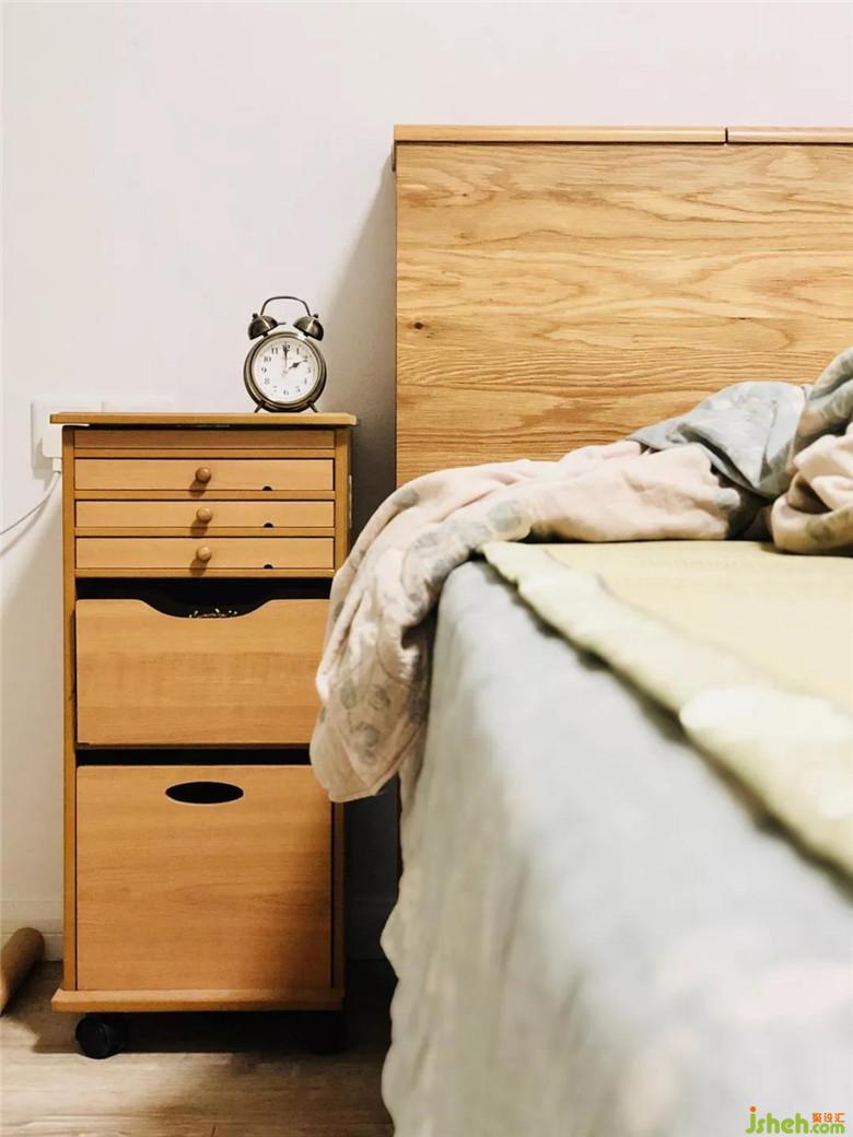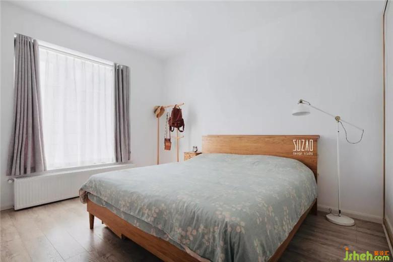 主臥的軟裝搭配色彩延續(xù)客廳的顏色,白色的墻體,搭配舒適的灰色床品及枕頭。